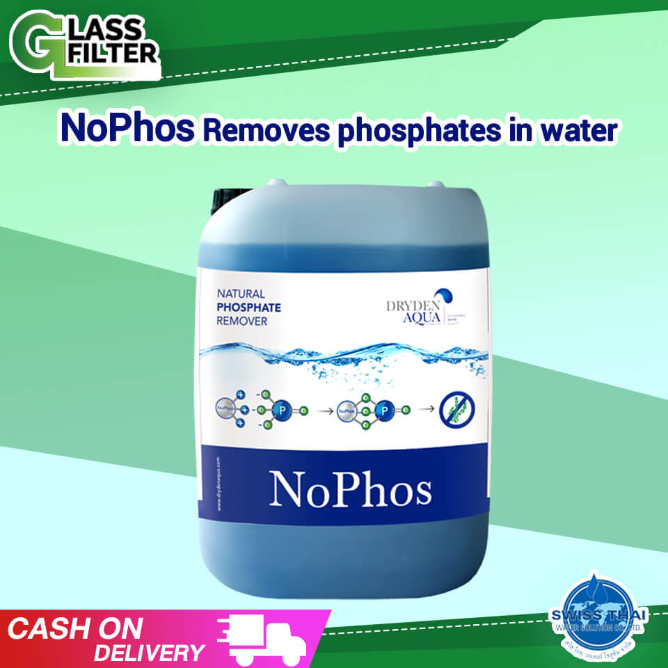 No phos is a natural product, removes phosphates in water. It can be safely used in private swimming pools, public swimming pools, natural Ponds and Fountain. This includes natural ponds, swimming pools and aqua-ponds. Nophos is a positively charged substance which will react with negatively charged phosphate become insoluble particles that can be filtered out with the AFM® glass filter, if these particles are not removed, it will become sediment falling to the bottom of the pool.