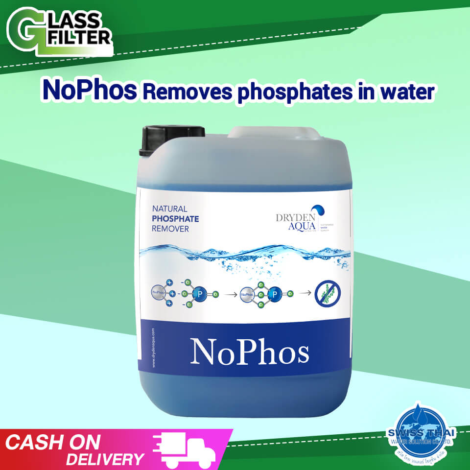 No phos is a natural product, removes phosphates in water. It can be safely used in private swimming pools, public swimming pools, natural Ponds and Fountain. This includes natural ponds, swimming pools and aqua-ponds. Nophos is a positively charged substance which will react with negatively charged phosphate become insoluble particles that can be filtered out with the AFM® glass filter, if these particles are not removed, it will become sediment falling to the bottom of the pool.